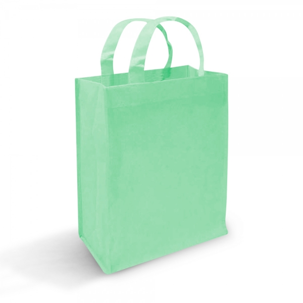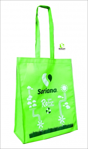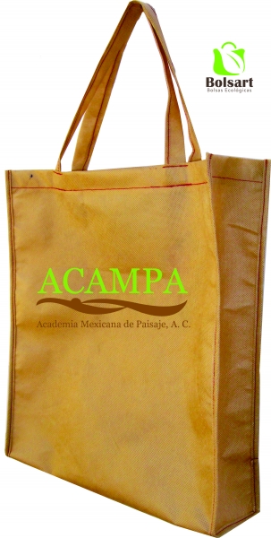 Bolsa de 3 dimensiones largo, ancho y alto. Con tres tipos de agarres diferentes: 1) Troquelada o suajada, tipo sobre. 2) Festonada o de resaque en esquinas. 3) De asas o agarradera, pueden ser de la misma tela o de Cinta de Poliester para mayor durabilidad, con el mismo costo.