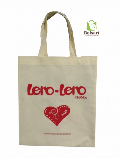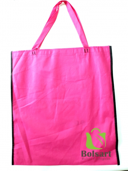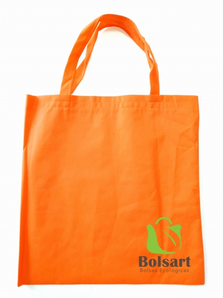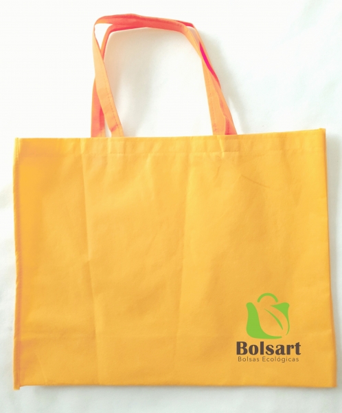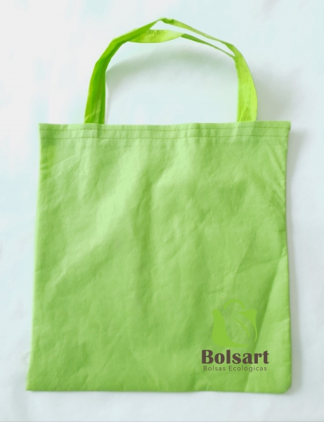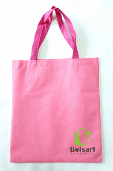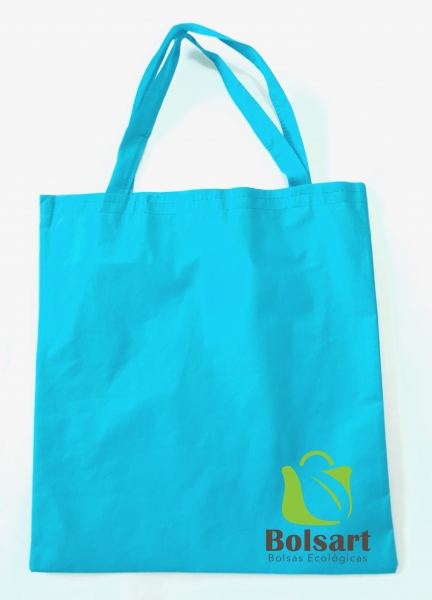 Bolsa plana de 2 dimensiones, largo y ancho, con tres tipos de agarres diferentes: 1) Troquelada o suajada, tipo sobre. 2) Festonada o de resaque en esquinas. 3) De asas o agarradera, pueden ser de la misma tela o de Cinta de Poliester para mayor durabilidad, con el mismo costo.